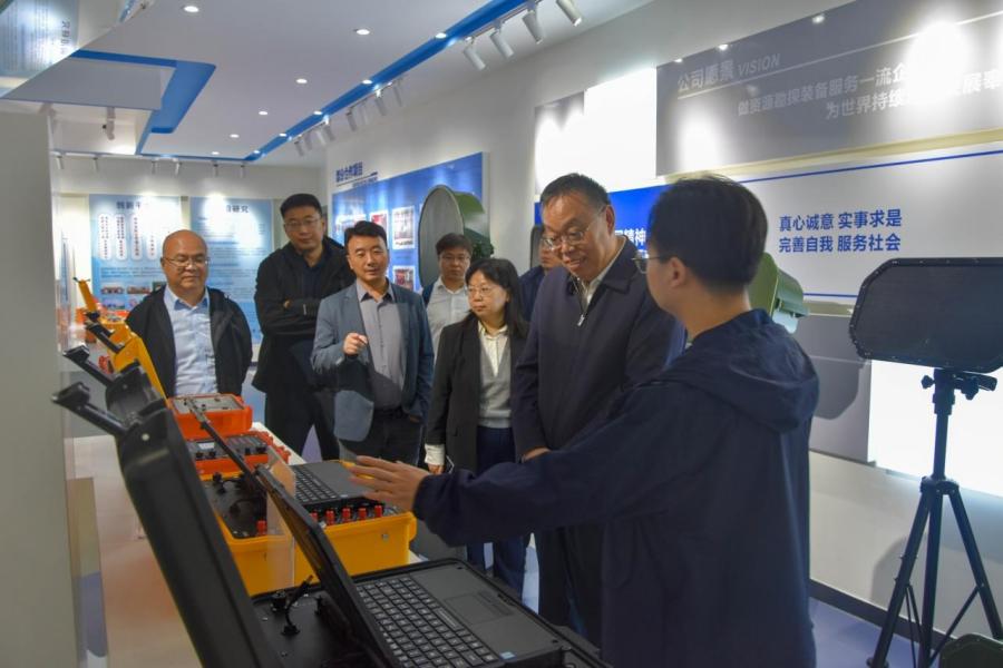 考察團一行首先參觀了繼善高科產業(yè)園區(qū),了解公司在廣域電磁儀、雙頻激電儀、堤壩管涌滲漏探測系統等擁有自主知識產權產品的研發(fā)歷程,以及在資源勘探、工程技術服務等領域的產業(yè)化應用成果。繼善高科在物探技術創(chuàng)新與成果轉化方面的實踐,引發(fā)考察團高度關注。