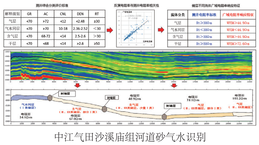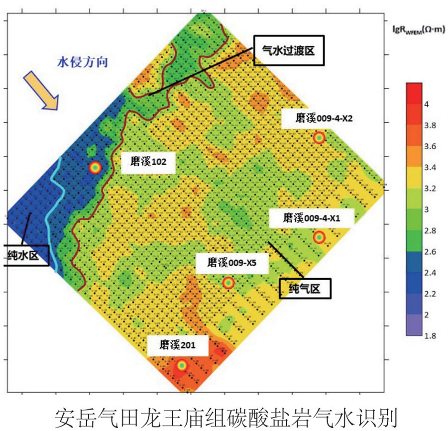 在中江氣田沙溪廟組河道砂氣水識別項目中,流體識別準確率91.7%,并得到了事后鉆井驗證;在安岳氣田龍王廟組碳酸鹽巖氣水識別項目中,準確識別了純氣區(qū)、氣水過渡區(qū)和純水區(qū),刻畫了水侵前緣位置,指導了開發(fā)技術政策調整。并對外圍區(qū)域鉆井前開展氣水分布預測,成果得到了事后驗證,指導了后續(xù)水平段靶體優(yōu)化、開發(fā)部署和資源潛力評價。